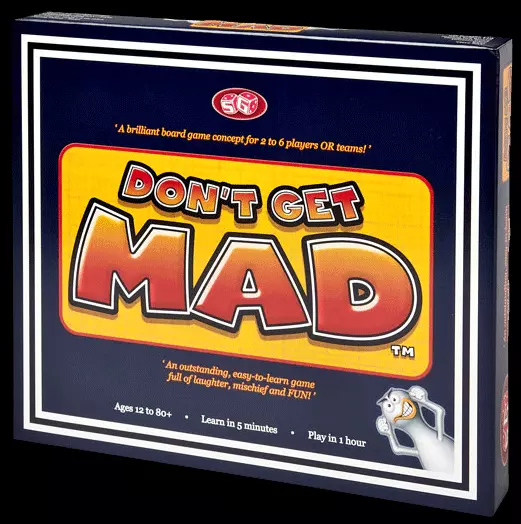 Don't Get Mad is an outstanding family board game that can be best described as a fabulous mix of Snakes & Ladders, general knowledge and poker. This brilliant, quirky game is conveniently compact and easy to learn; many questions from original categories are multiple-choice - allowing anybody who plays a great chance to win. No player, or team can ever go 'out', until the game is over.